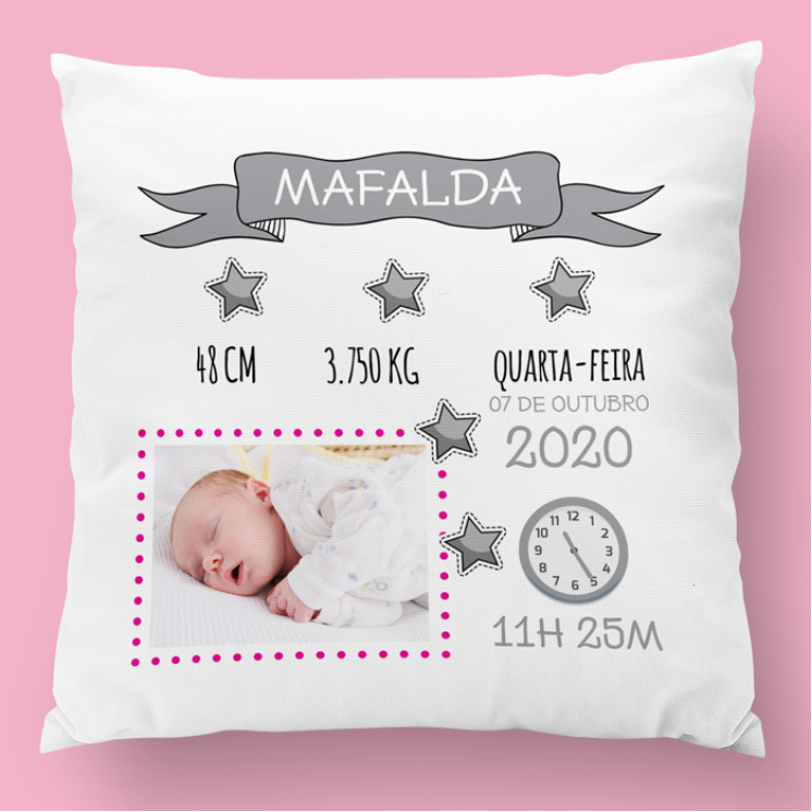 almofada de nascimento estrelas rosa